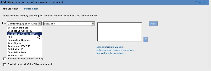 2. Use the drop down menu to highlight and select the Attribute Filter.